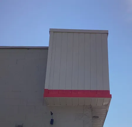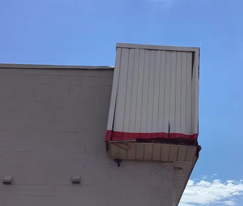 Secured damaged portion of roof after a semi accident. Provided labor, material, and lift to demo damaged portion of canopy. Rebuilt framing, replaced soffit and fascia, painted to match existing design and cleaned up job site.